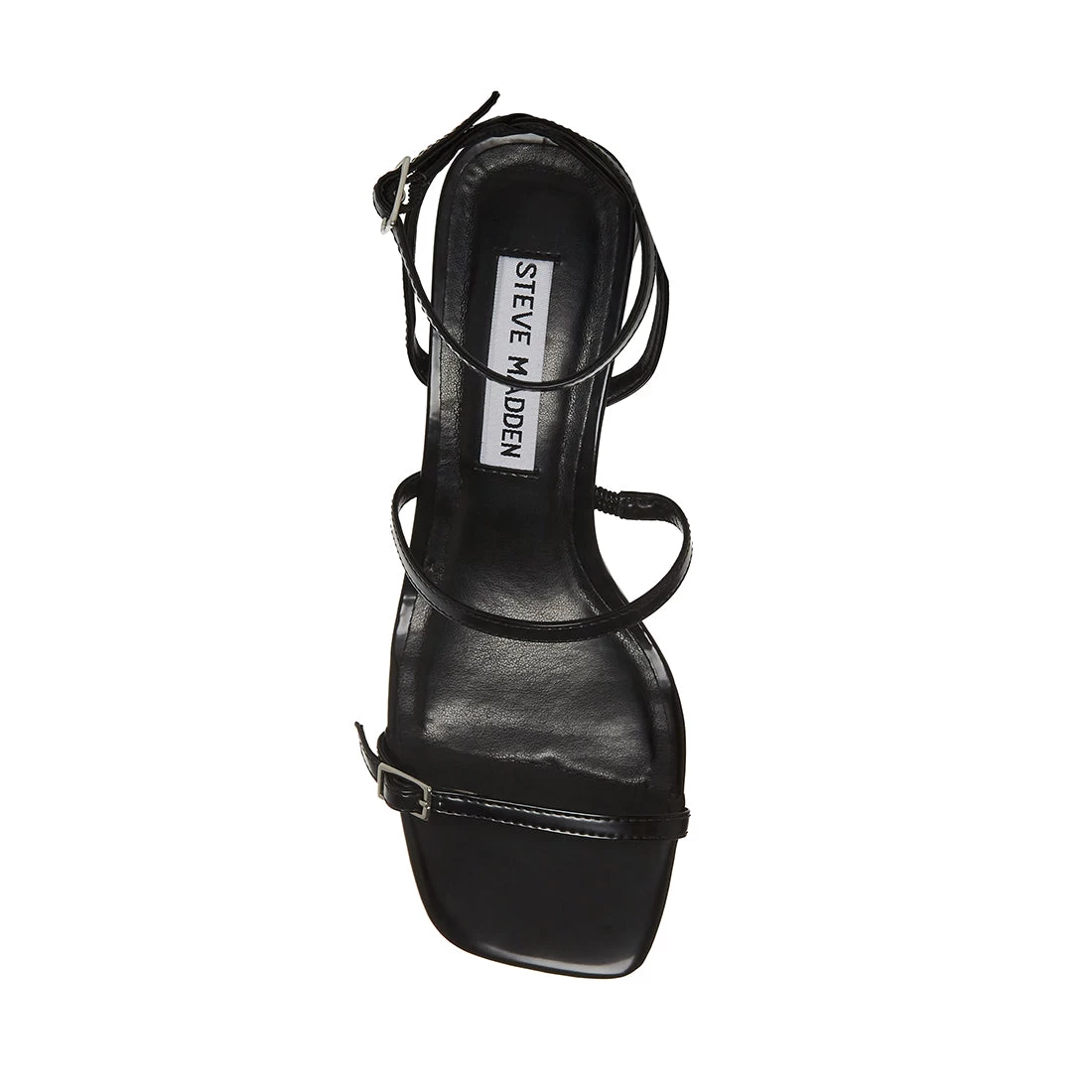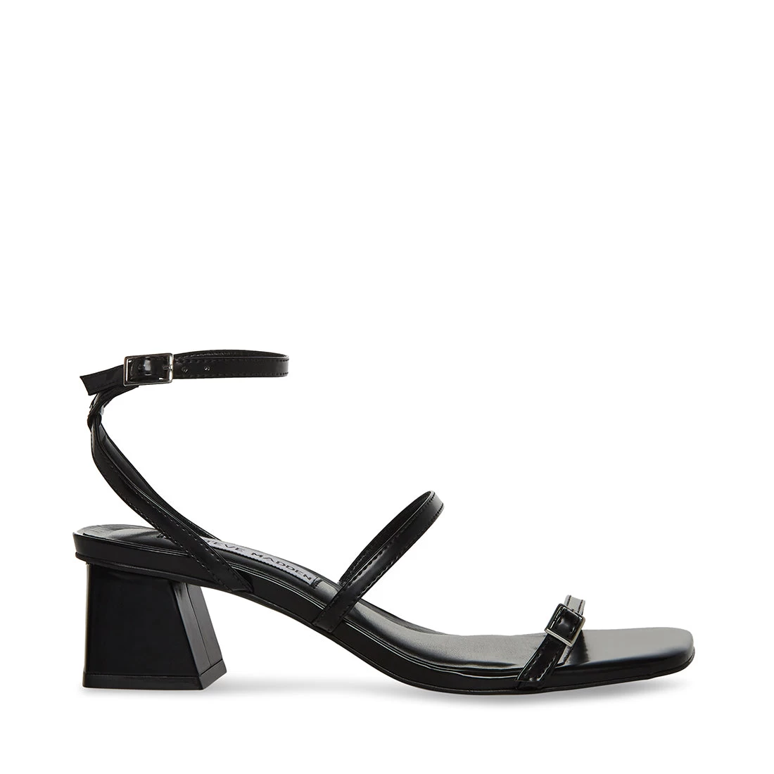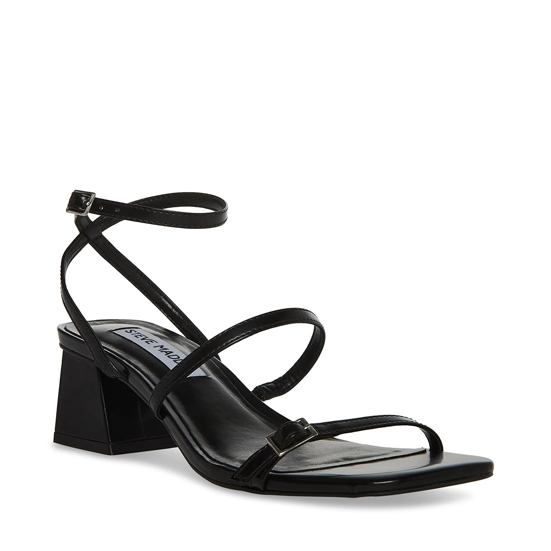 The AMALIA sandal contrasts slender straps with an angled block heel and wide square toe for a dynamic, angular look.