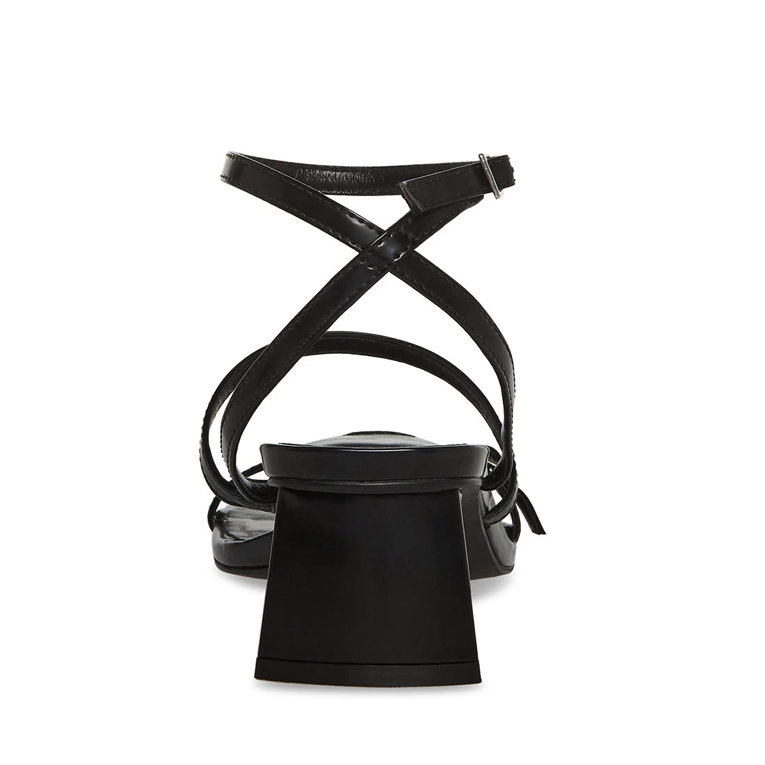 - Front strap and crossed ankle straps and with buckle closures