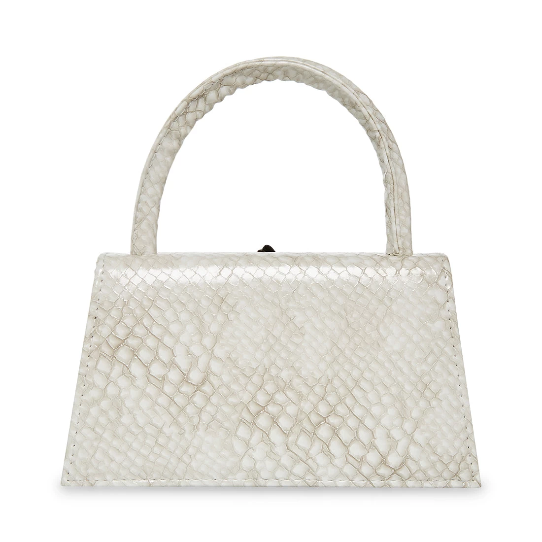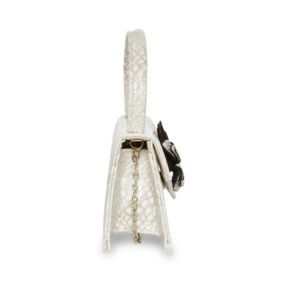 A rhinestone flower at the center of the top flap of the BDANIELA accents this structured top handle handbag with an extra touch of sparkle.