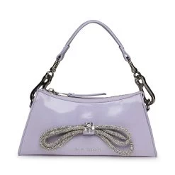 The BRITZY-P bag features an elongated trapezoid silhouette with a rhinestone-embellished bow centered on the front. Interchangeable strap options give this bag extra versatility.