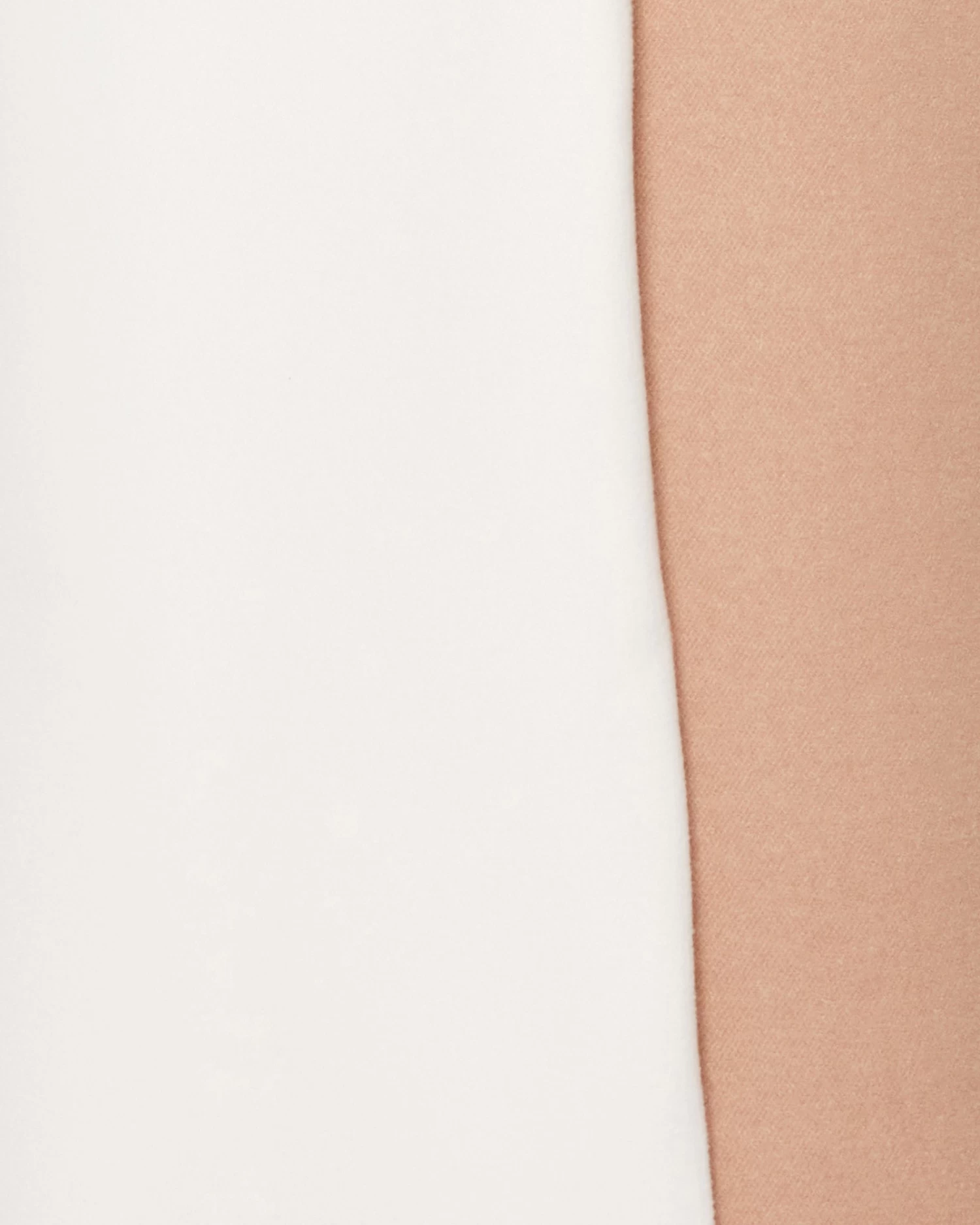 The CAROLINE coat makes a statement with a structured midi length split-color design that’s finished with a double breasted closure.