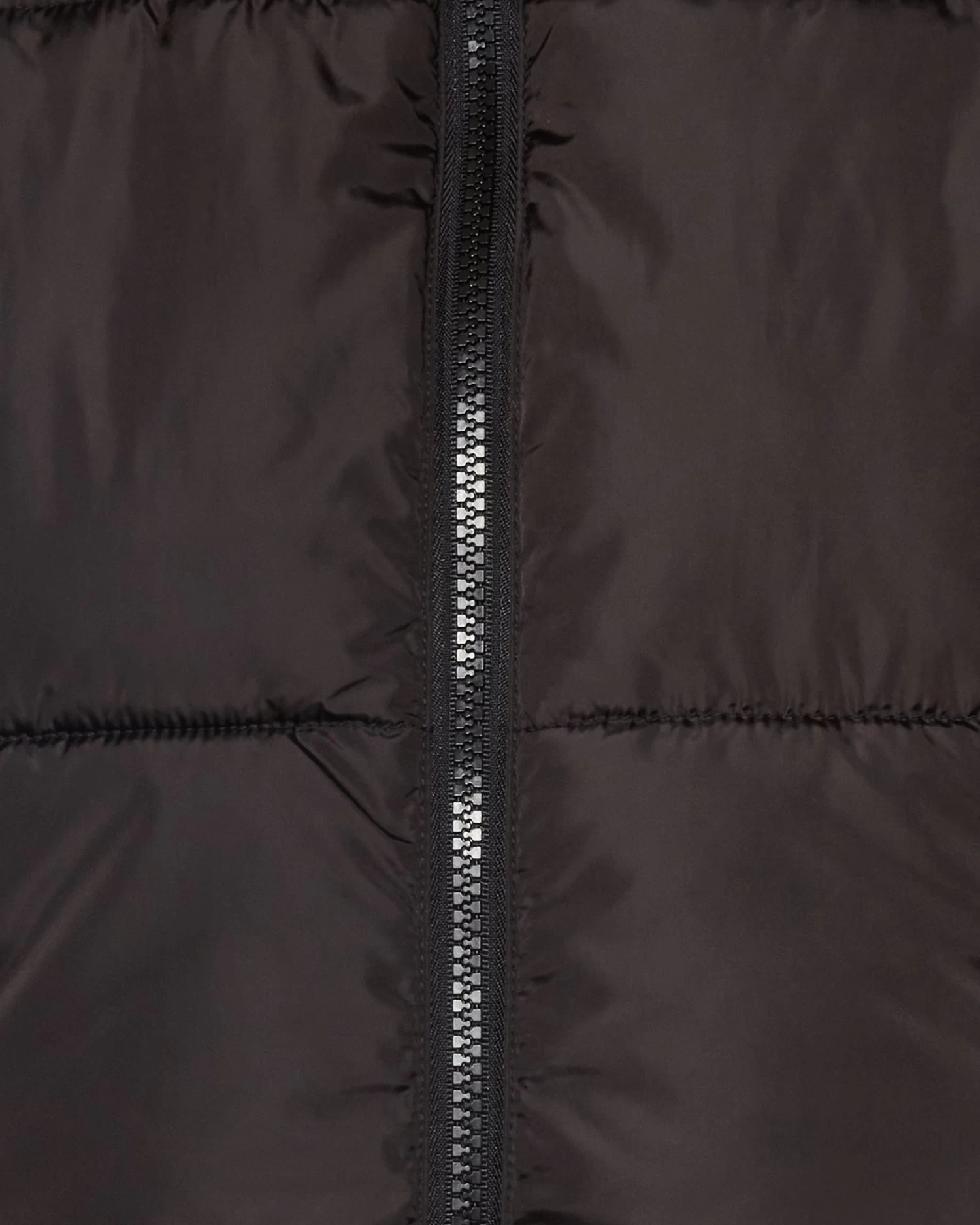 The DAISY puffer vest is a cropped design with a high neck that shows off the contrast color lining.