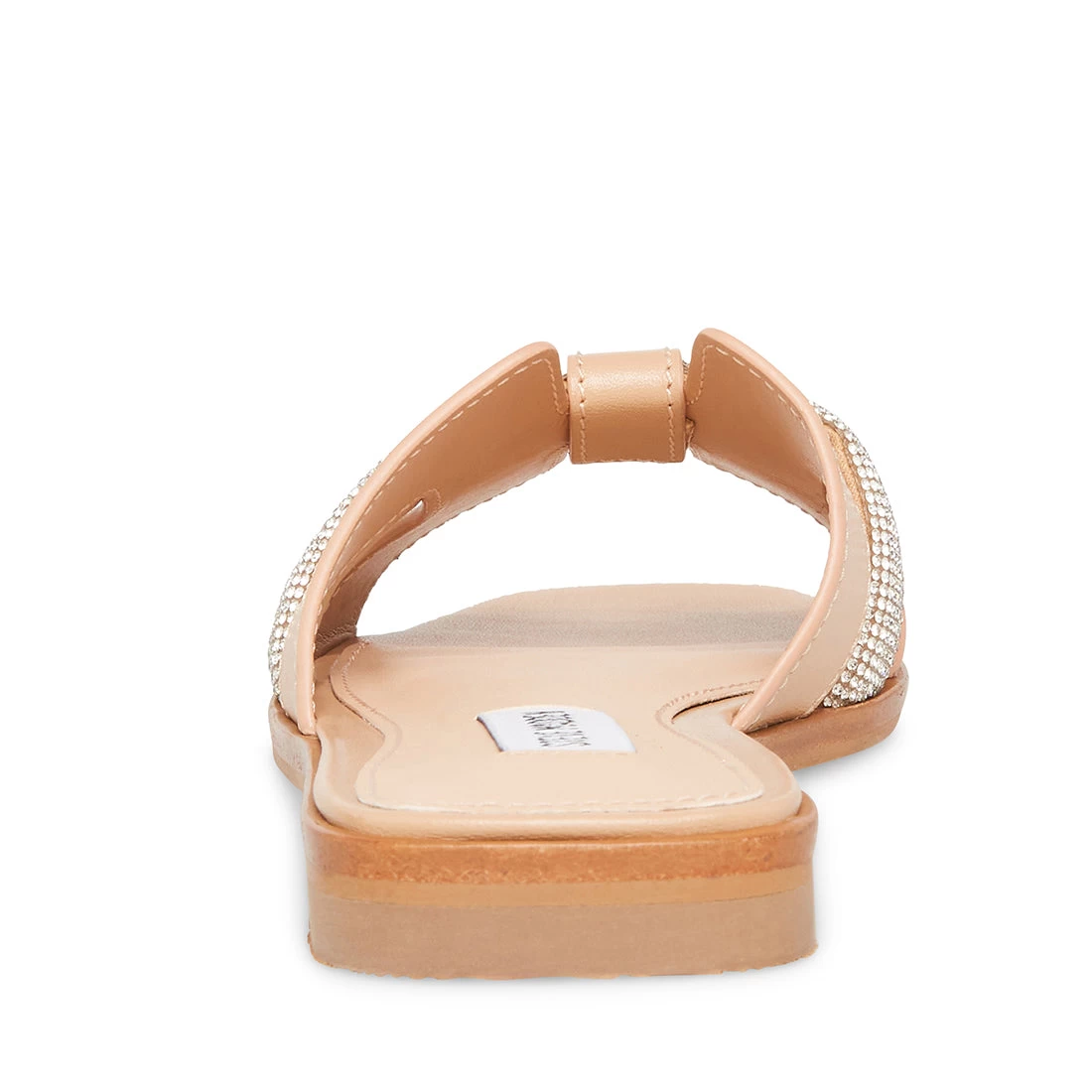 The HOLLI slides feature cut out leather straps with a rhinestone embellished strap woven through for a raised texture and a sparkly look.