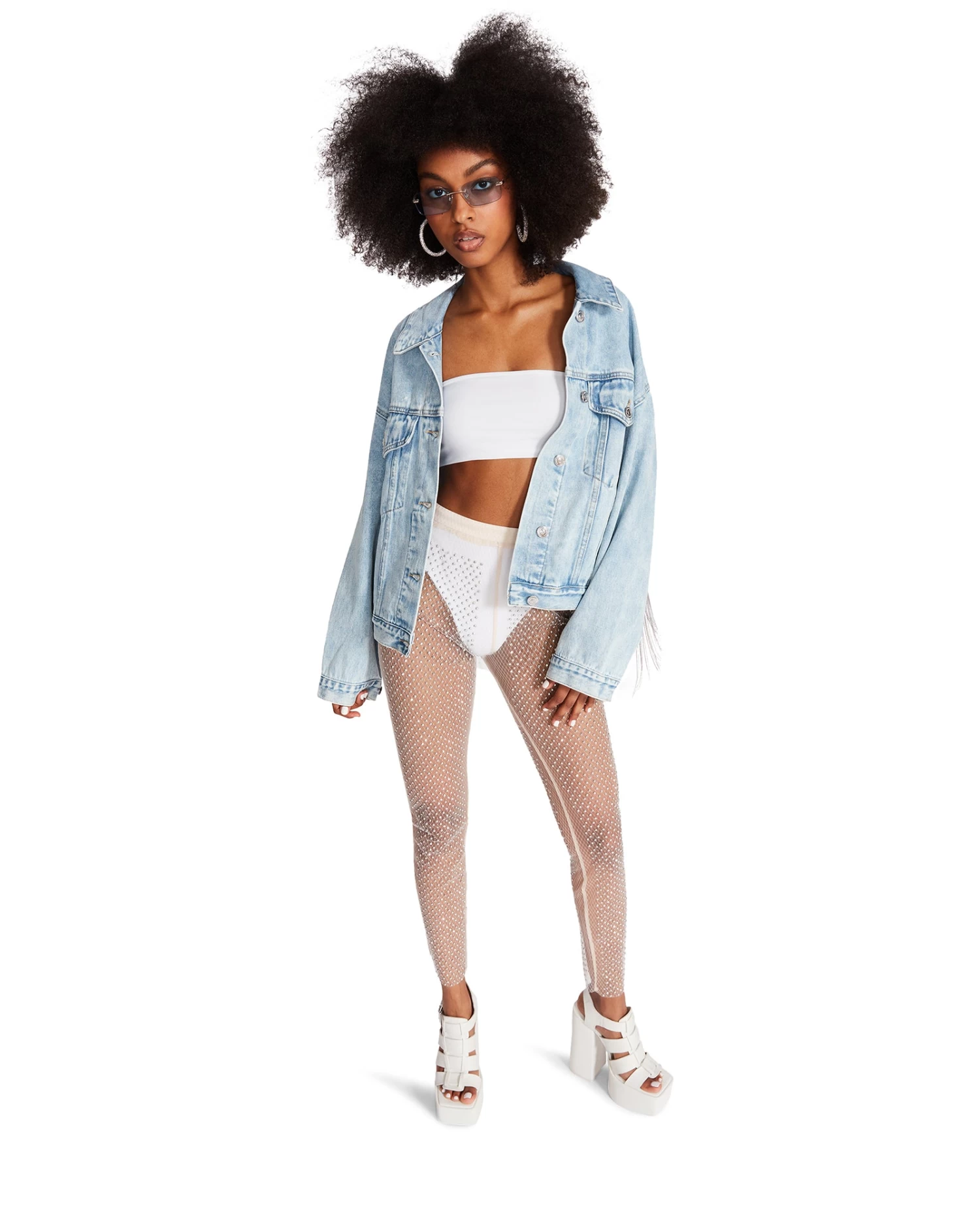 Turn up the heat in these barely-there rhinestone-embellished pants.