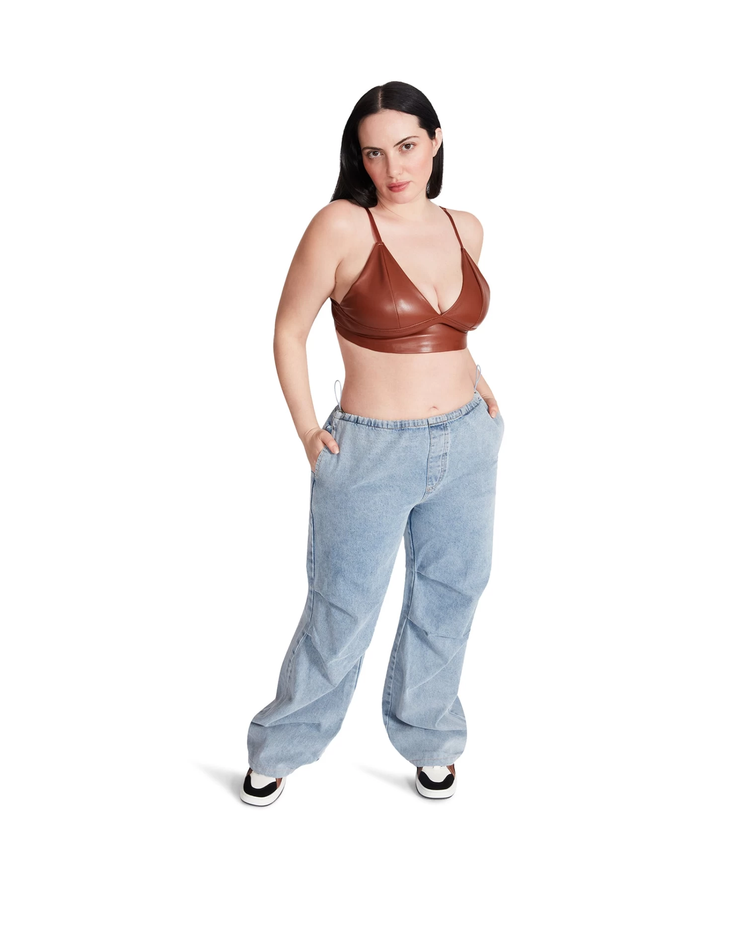A wide leg casual pant is essential for an updated silhouette and the adjustable PIA parachute pants use stretch cord drawstrings and clever tailoring to maximize a voluminous silhouette.