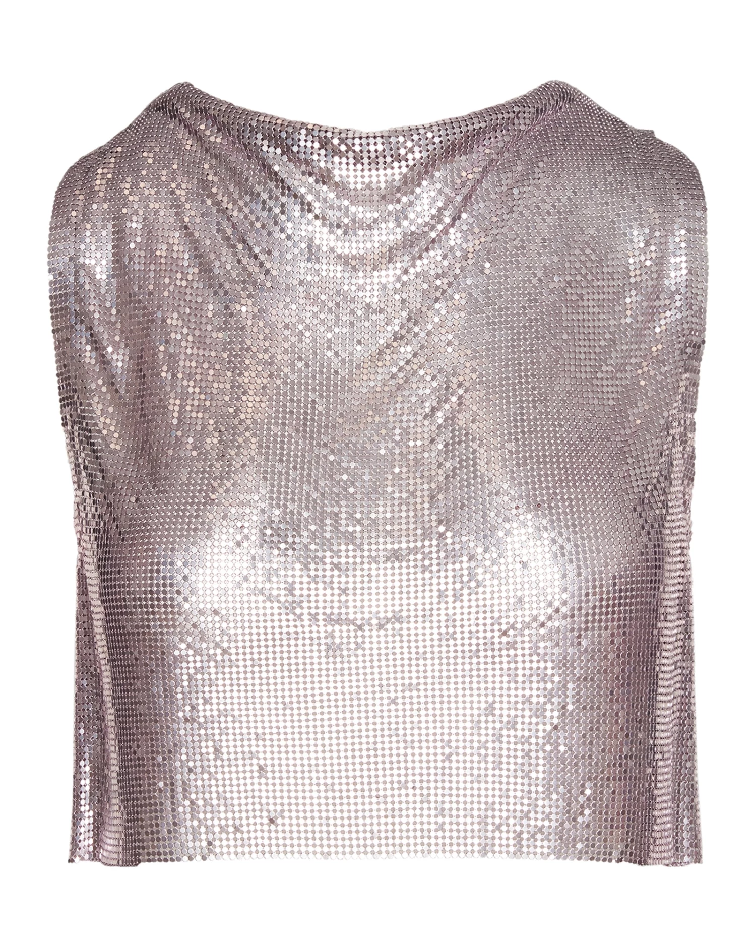 A fully metal mesh construction gives the open-back SALINA top shimmering texture and movement.