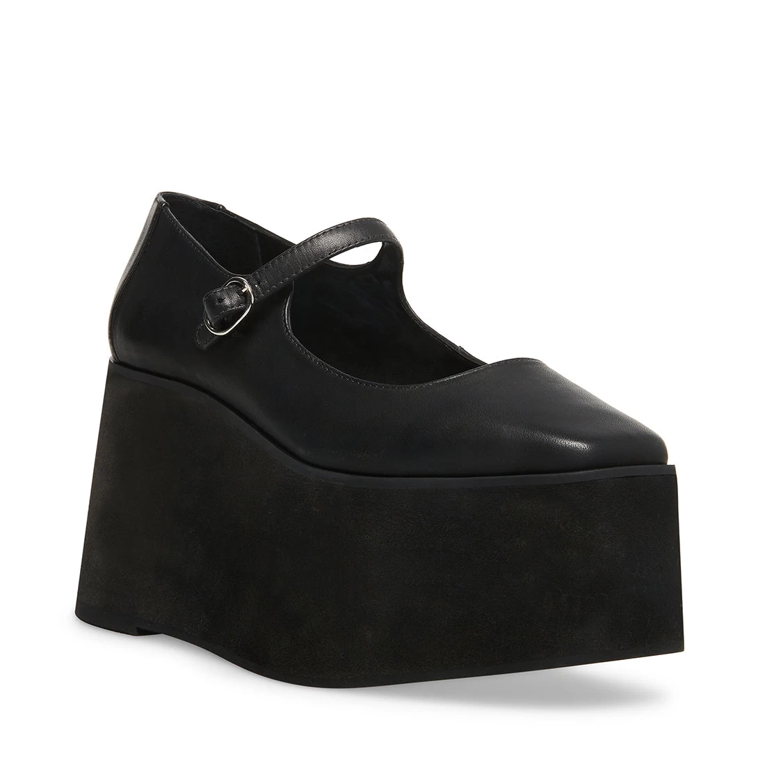 SASHA is a leather Mary Jane set on a smooth flatform and finished with a square toe.
