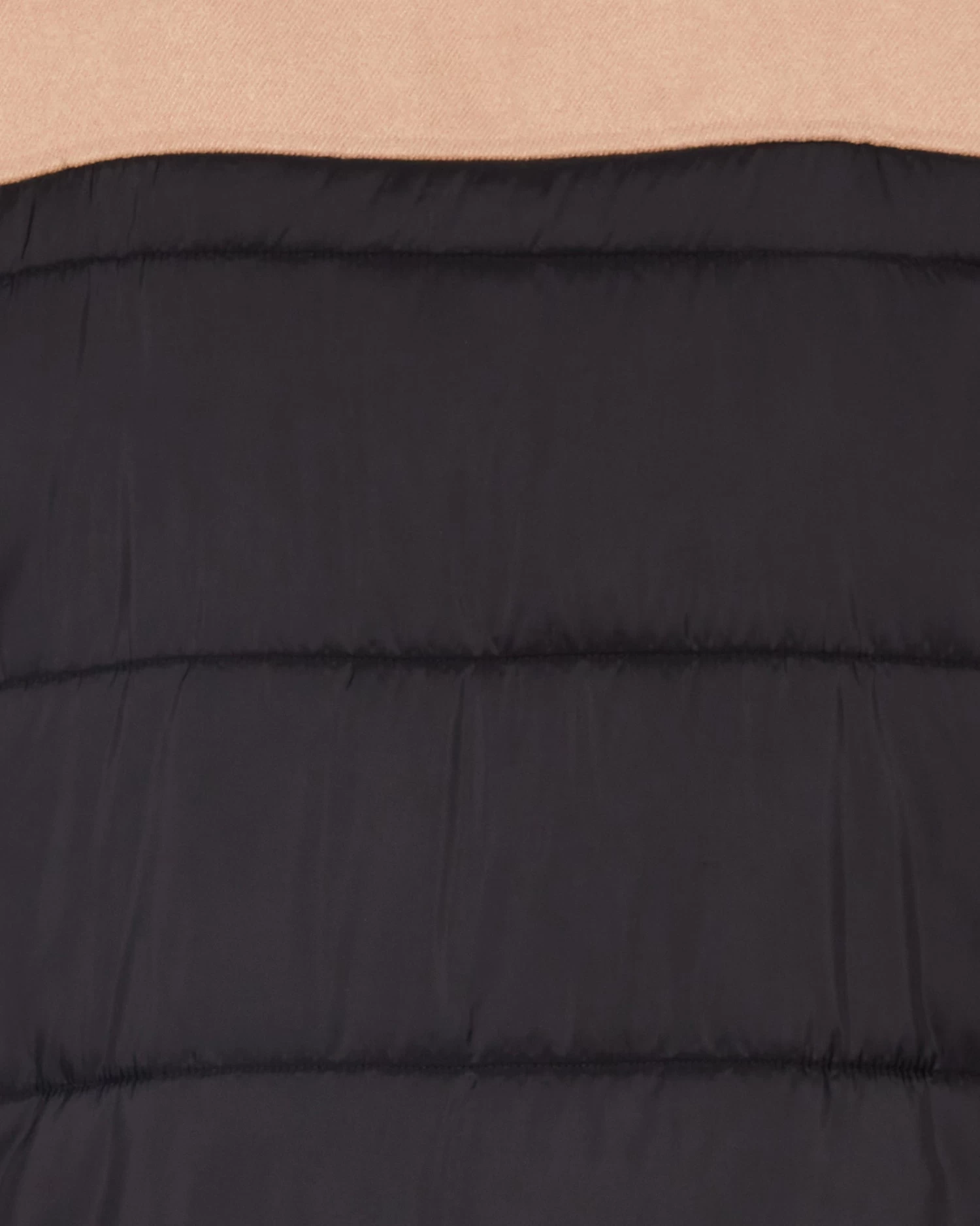 The midi length SAVANNAH coat brings together two cozy textures – the brushed twill double breasted front and the quilted puffer sleeves and back – for a warm and snug outer layer.
