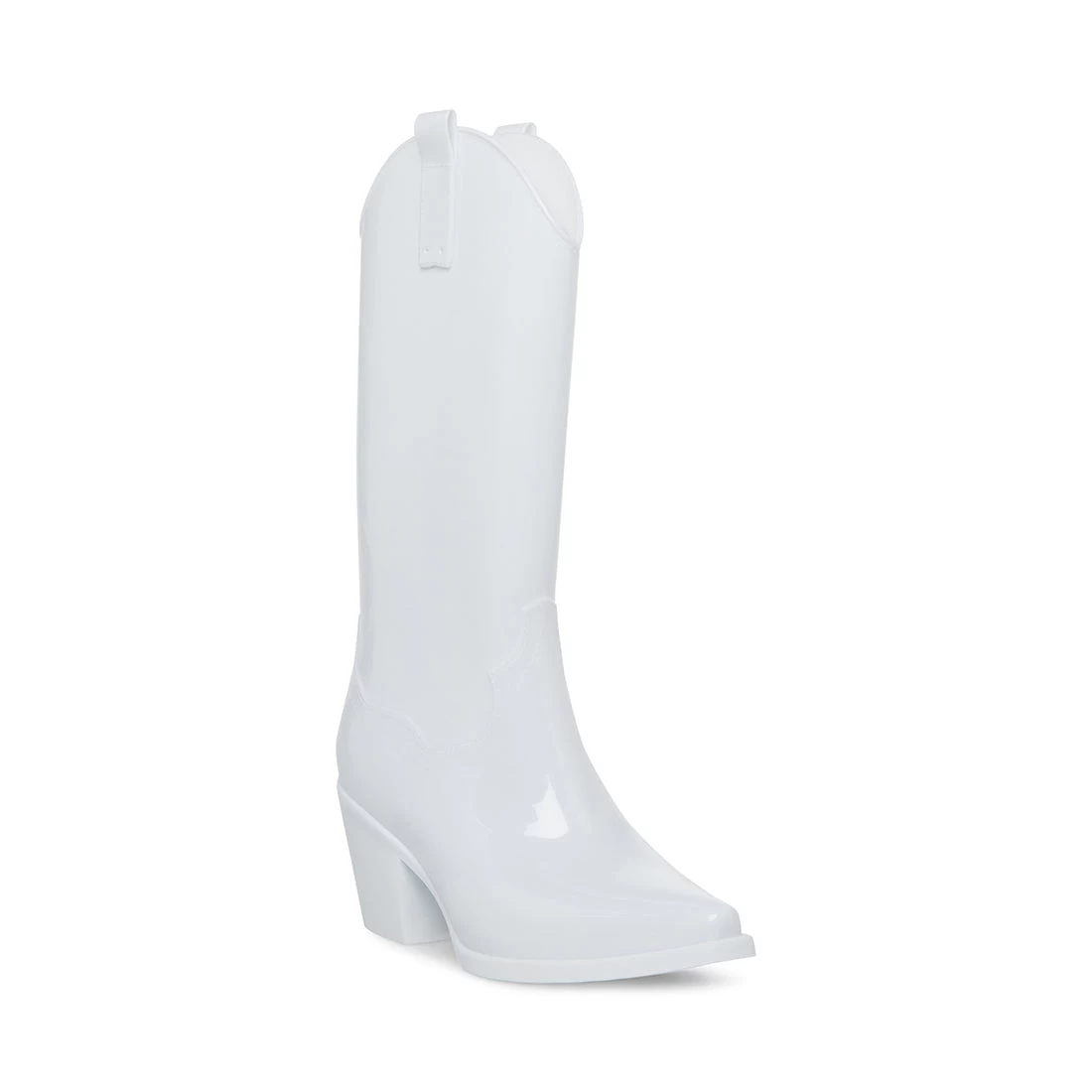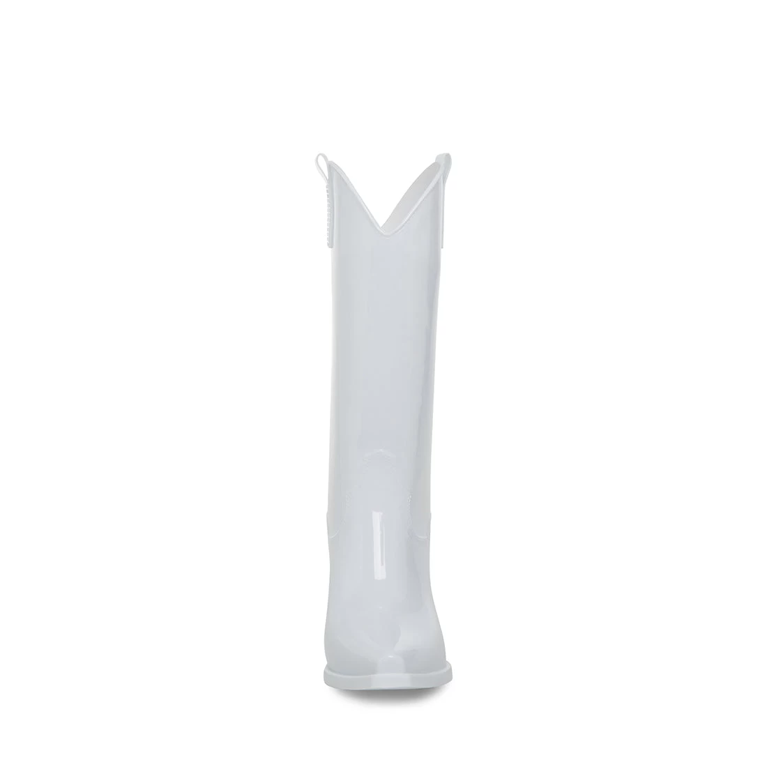 Why pick between a rain boot and a cowboy boot? SHALLOW is a continuously molded waterproof boot with western-inspired details like the point toe, the angled block heel, and the arched sides of the top.