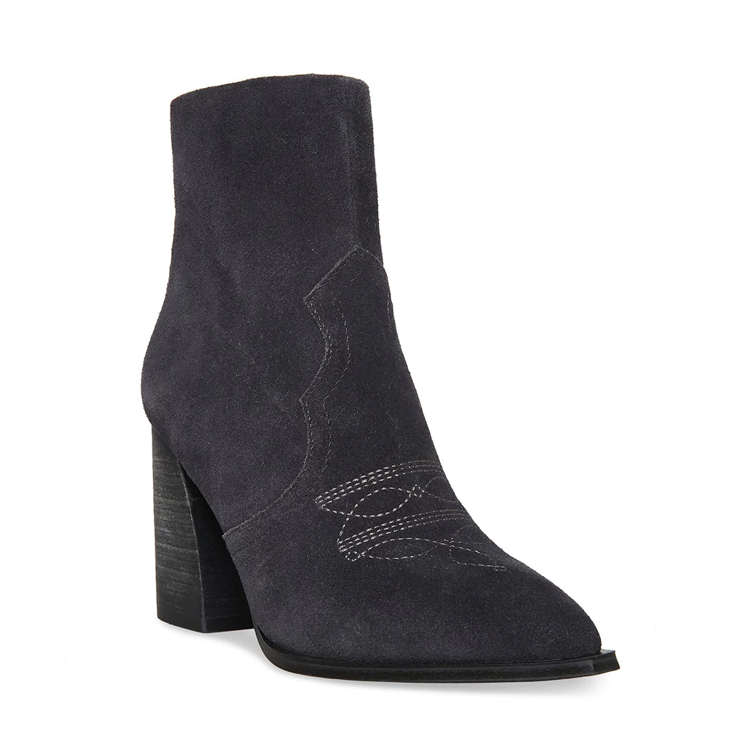 A sculptural heel and a cropped ankle height silhouette update the embroidered STABLE bootie’s traditional western point toe look.
