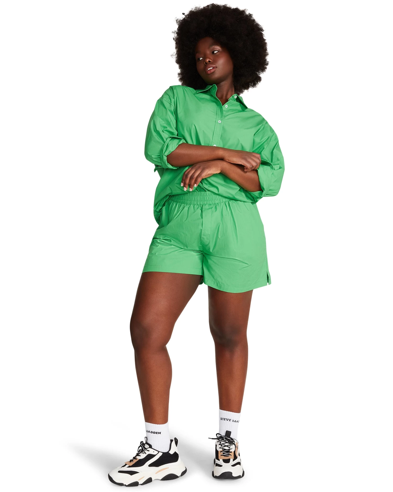 The cotton poplin TISH shorts feature a comfortable stretch waistband and roomy fit for a relaxed boxer short silhouette.