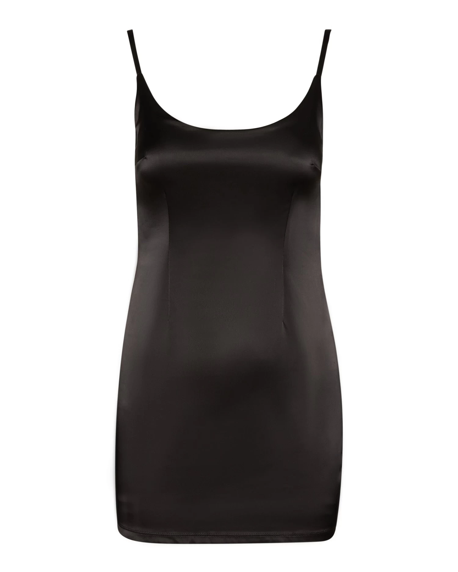 The TOBI tank dress gives you a tight, second-skin fit emphasized by the shiny stretch satin shell. The body suit liner lets you finally wear the micro-mini party dress of your dreams without worrying about wardrobe malfunctions.